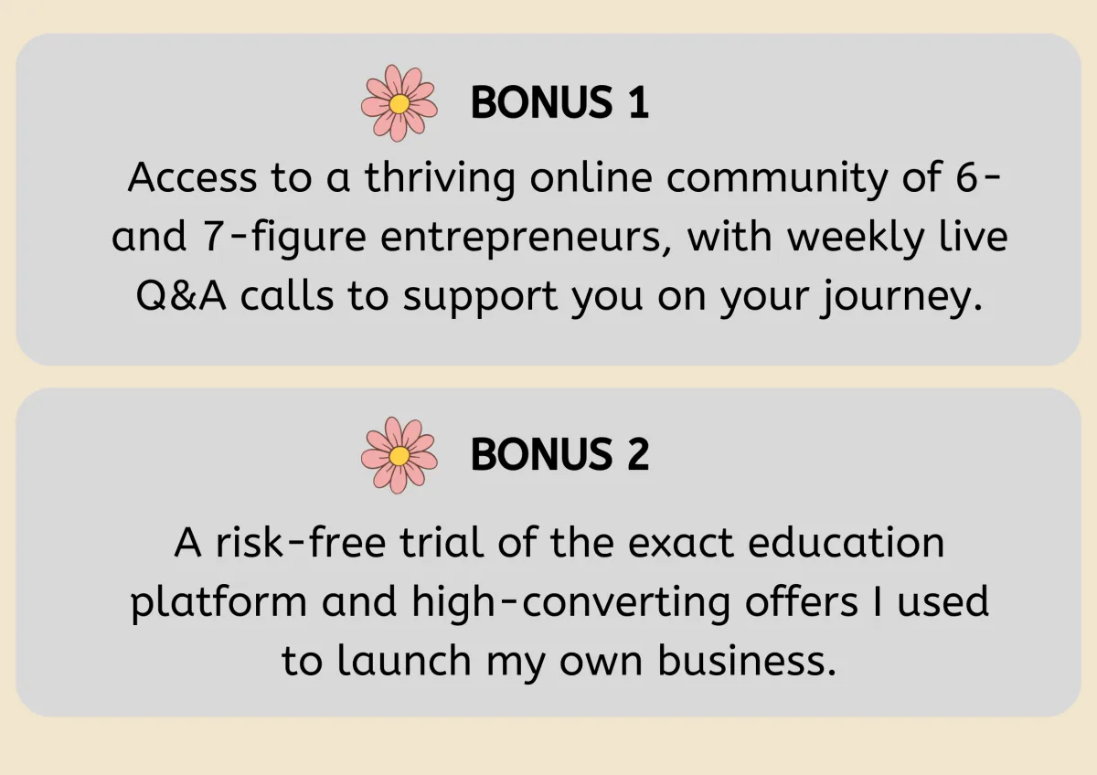Click the button below to watch my free training, where I’ll walk you through exactly how you can create a business that works for you, and design a life on your own terms.